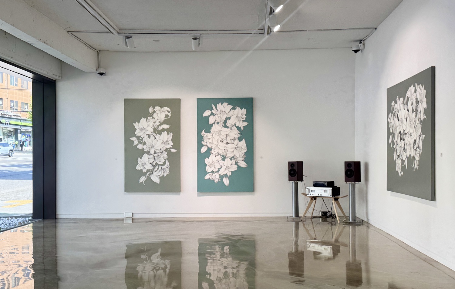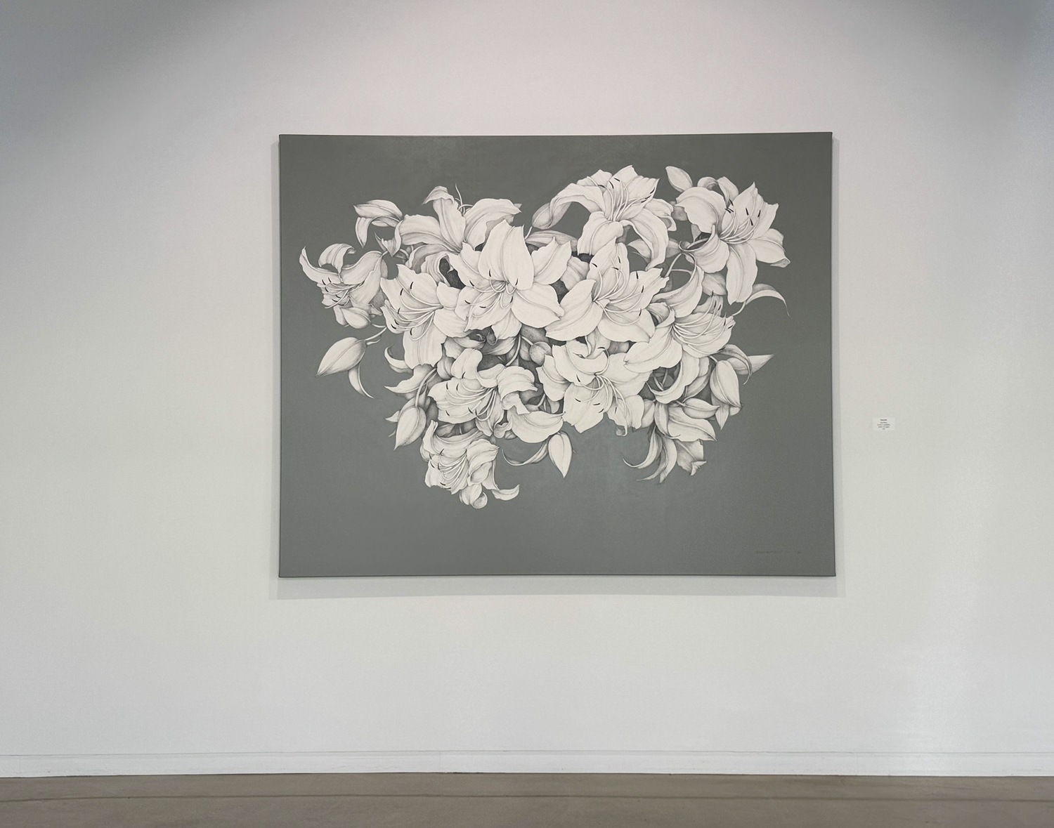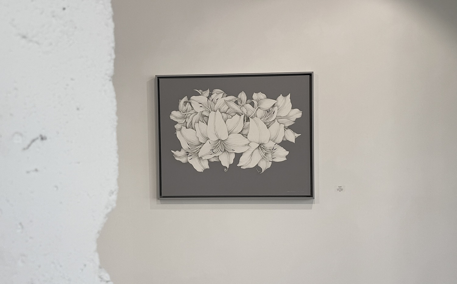 작품 속 꽃의 자리에 ‘나’라는 존재를 세우는 순간, 화면은 단순한 정물화에서 지극히 개인적인 고백이자 사적인 초상으로 전환된다. 죽음 뒤 남겨질 나의 흔적을 상상하고 이를 흑연의 레이어로 묵묵히 기록해 낸 이 작업은, 언젠가 이 세상에 존재했던 모든 이들에게 바치는 헌사이기도 하다. 《Trace》는 흔적이자 곧 자취다. 캔버스 위에 겹겹이 쌓인 흑연의 층위는 결국 이곳에 머물렀던 누군가의 초상이며, 그 앞에 서는 순간 관람자는 자신도 모르게 피사체가 되어 내면과 존재의 궤적을 찬찬히 되짚어보게 된다.